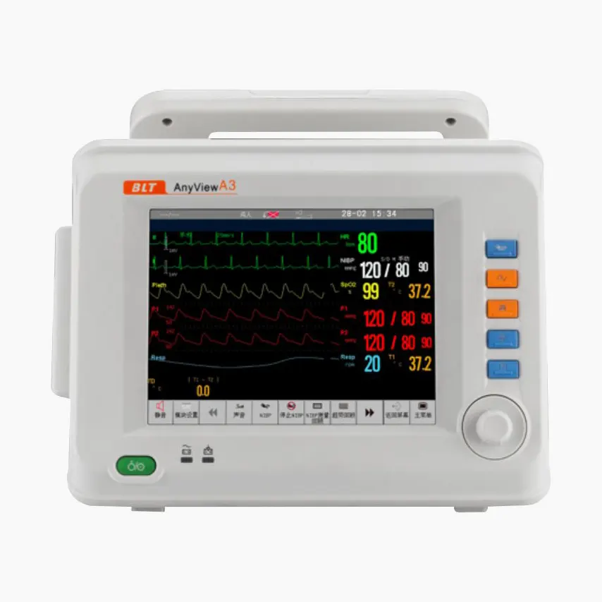 El monitor Q5 cuenta con pantalla TFT de 12.1” y permite visualizar hasta 11 formas de onda. Mide parámetros vitales estándar y admite módulos avanzados como CO₂ e IBP. Su diseño portátil ofrece hasta 7 horas de autonomía continua.